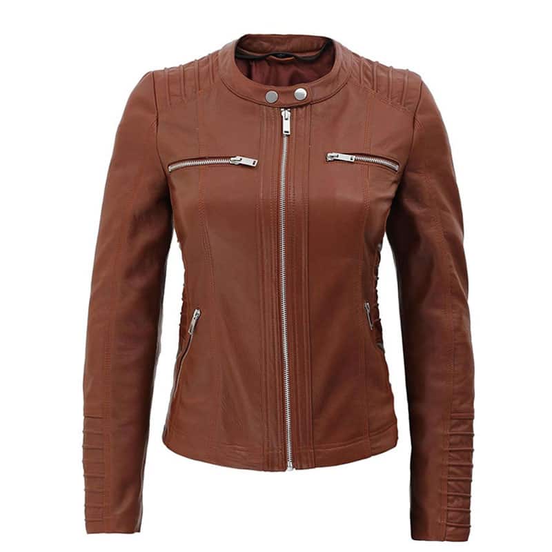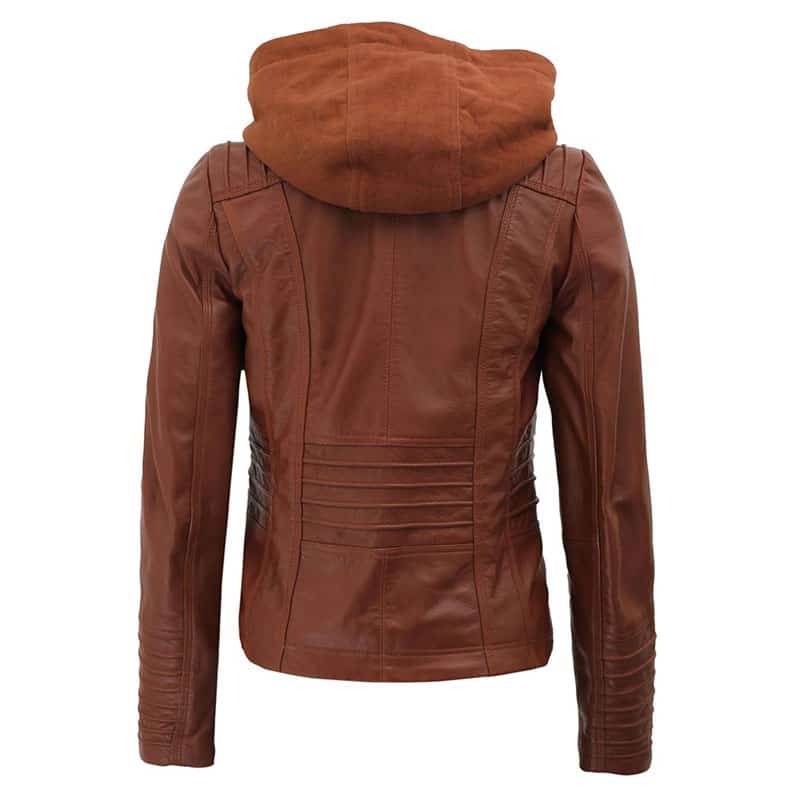 Women's Slim Fit Brown Hooded Leather jacket for women